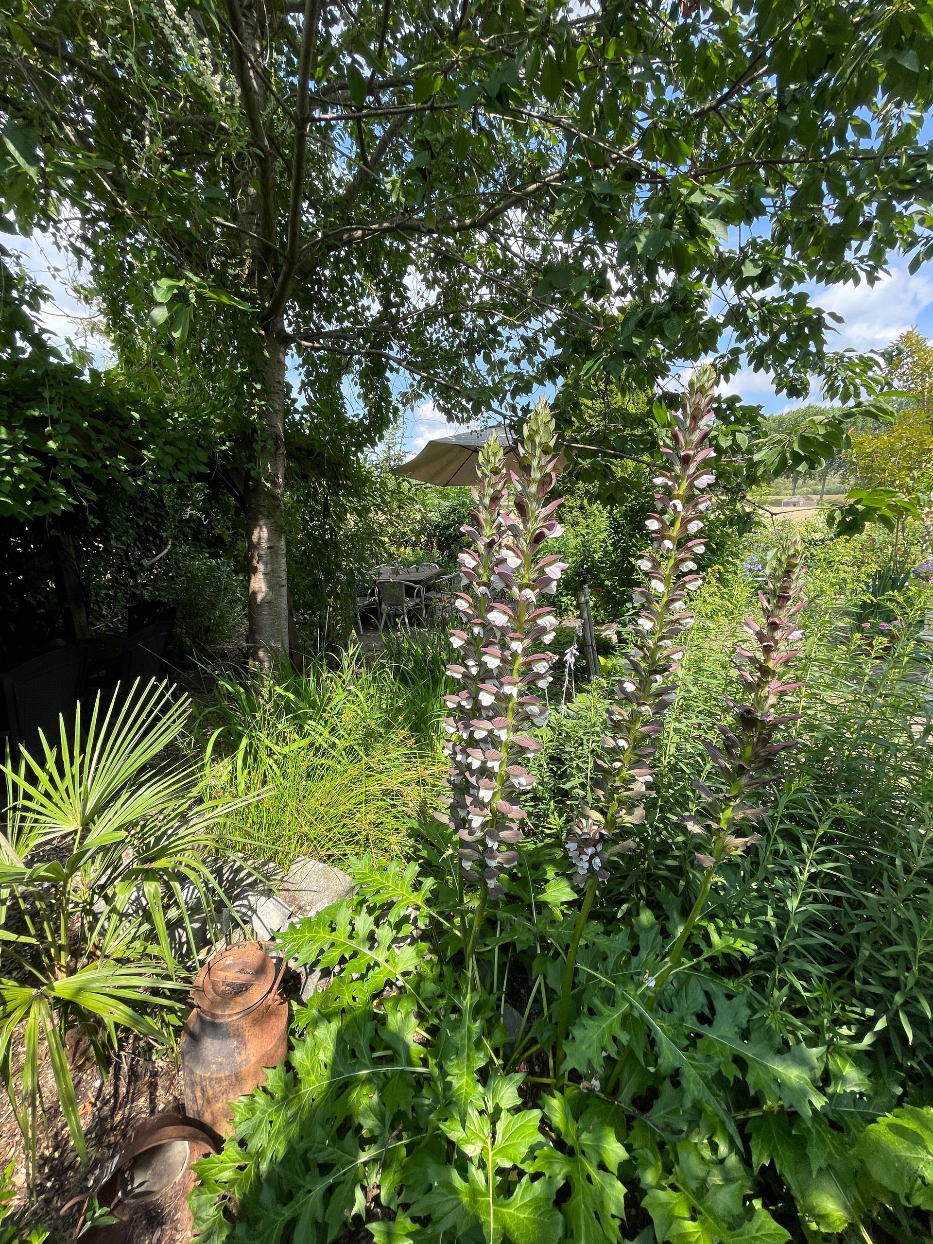 Wandeling van 2-2,5 uur die via de Zuidhaven langs de oever van de Nieuwe Merwede loopt en via een laarzenpad (jungle gevoel zonder kapmes) naar de vogeluitkijkbunker. Vervolgens via de landerijen terug naar de Zuidhaven. We eindigen bij de theetuin van de Griendheuvel (vlakbij) voor een kopje koffie/thee (inbegrepen) en vrijblijvend een lunch of ander lekkers (niet inbegrepen). Zo heeft de theetuin 85 soorten muntthee, maken ze hun eigen honing, jam en nog meer lekkers en verkopen ze andere leuke producten. Zie ook enkele foto's van de theetuin hier verder naar beneden.